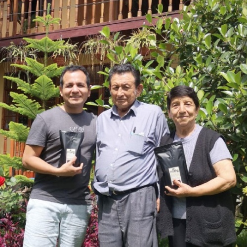 Nuestra plantación de café está frente a la laguna El Oconal, en el distrito de Villa Rica. Se cultiva sobre los 1600 metros de altitud. Tiene un proceso bastante responsable. Cuidamos todas las etapas del proceso, desde la siembra, cultivo, cosecha, secado de los granos bajo sol y también en secadoras solares. Luego hacemos un proceso de selección de los mejores granos para llevarlos a tostar, embolsarlos y presentarlos a ustedes.